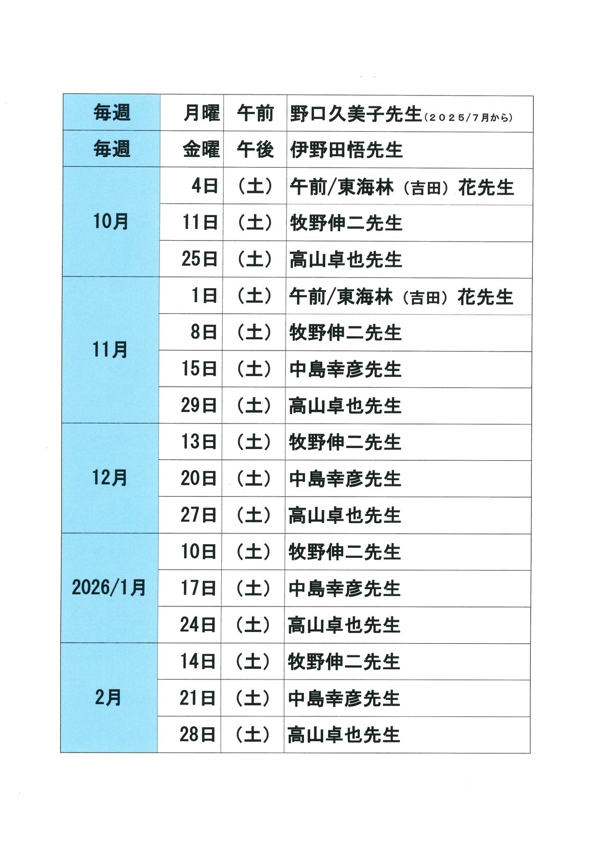 | 午前 | × | ○ | ○ | ○ | × | ○ | ○ |